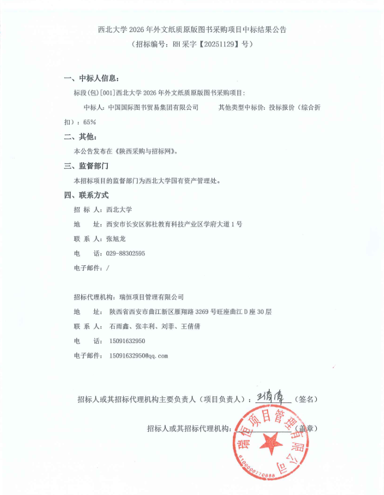 米兰买球2026年外文纸质原版图书采购项目中标结果公告