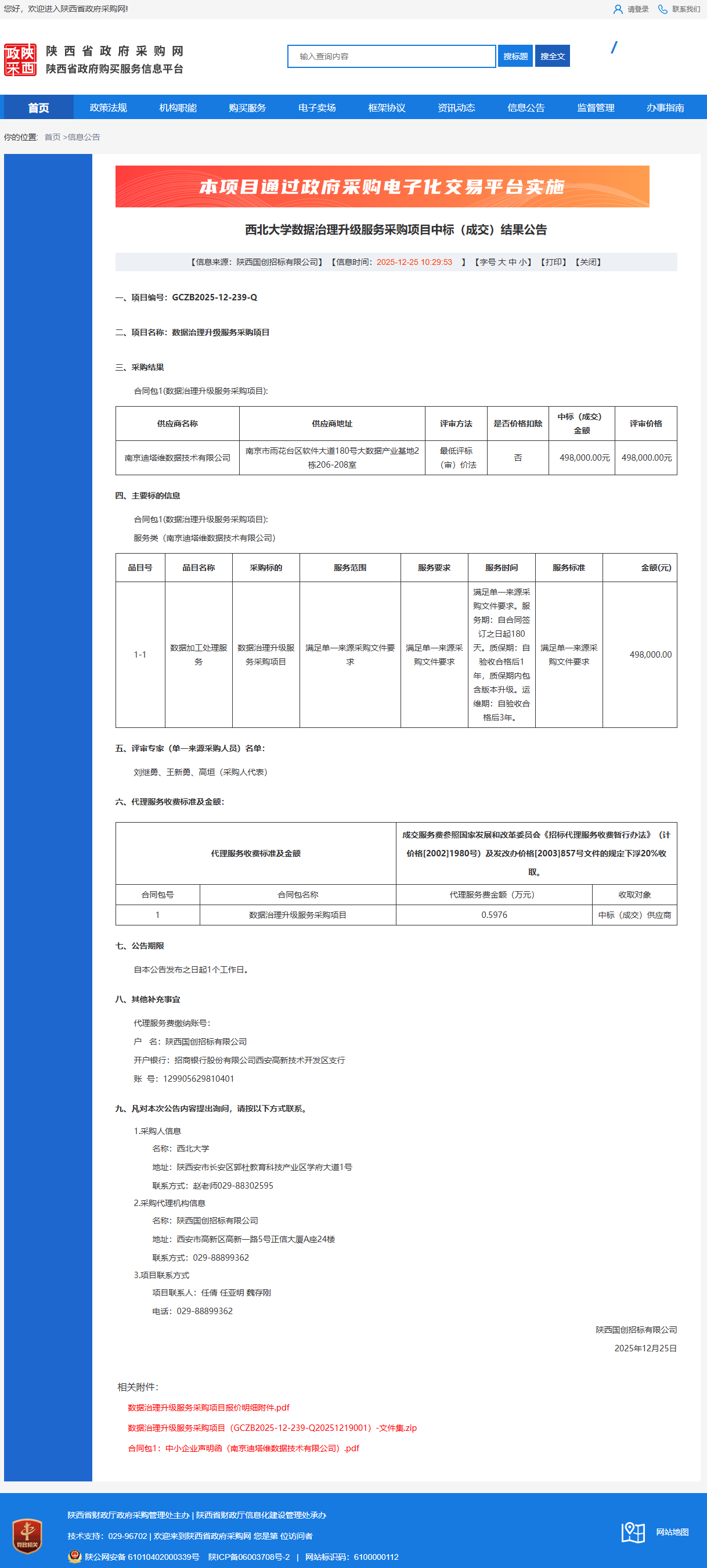 米兰买球数据治理升级服务采购项目中标(成交)结果公告