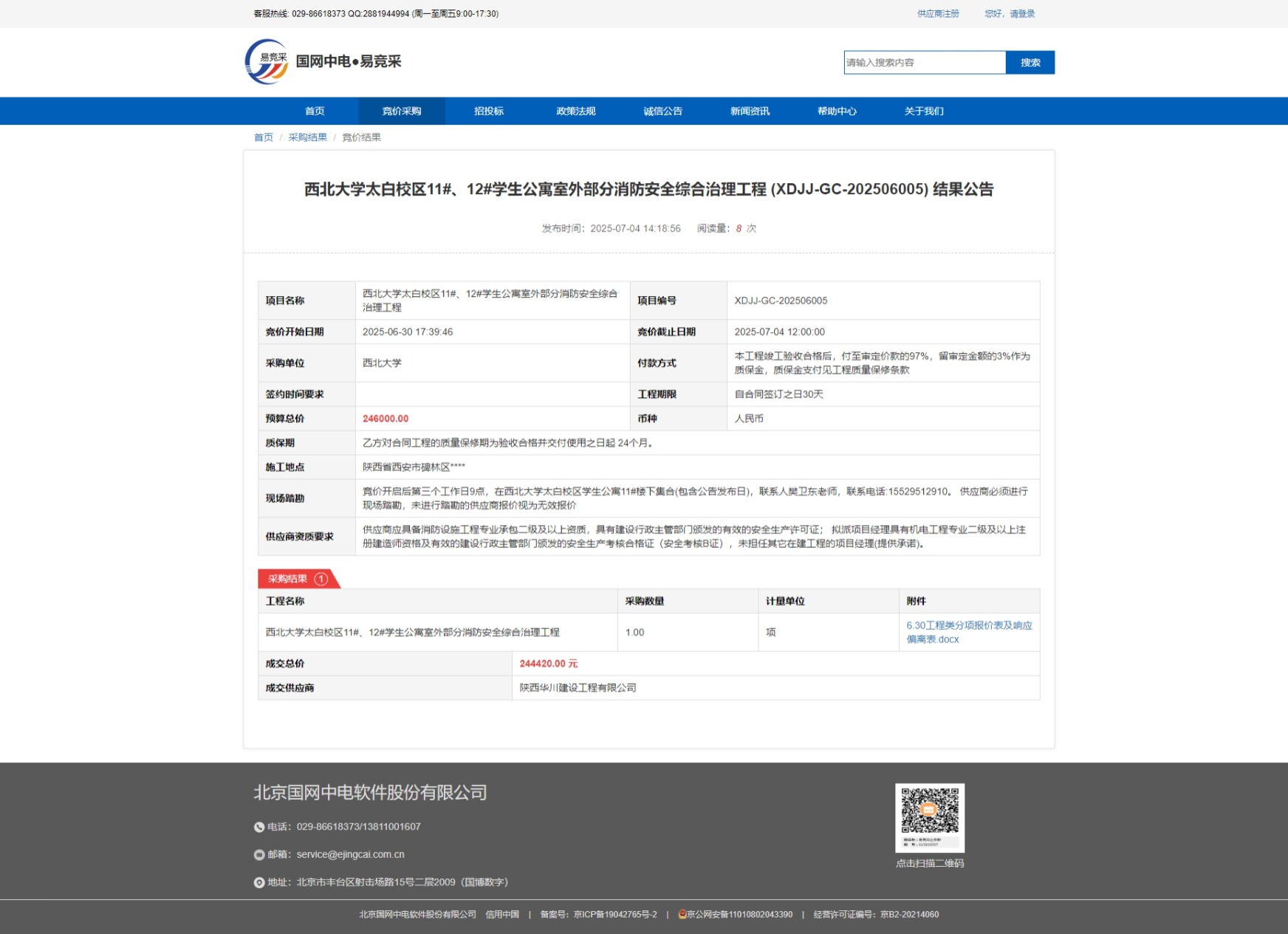 米兰买球太白校区11#、12#学生公寓室外部分消防安全综合治理工程 (XDJJ-GC-202506005) 结果公告 作者: 编辑:采购与招标办公室 时间:2025-07-04 原公告链接:https://www.ejingcai.com.cn/site/bidding/detail/19344