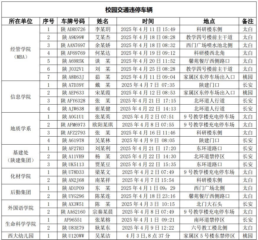 为进一步加强校园交通管理,保障校园交通安全有序,维护学校正常的教学、科研和生活秩序,切实保护师生员工的人身财产安全,根据《米兰买球校园交通安全管理规定》的相关要求,现将2025年4月校园交通违章车辆予以曝光,具体要求与违章信息如下: